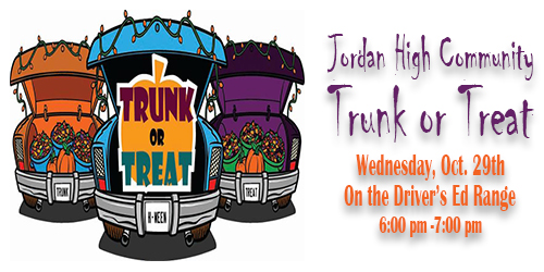 Ready for some candy, fun, and community mingling? Come to our annual Trunk or Treat with our JHS clubs, teams, and departments on our Driver’s Range–located at the south east