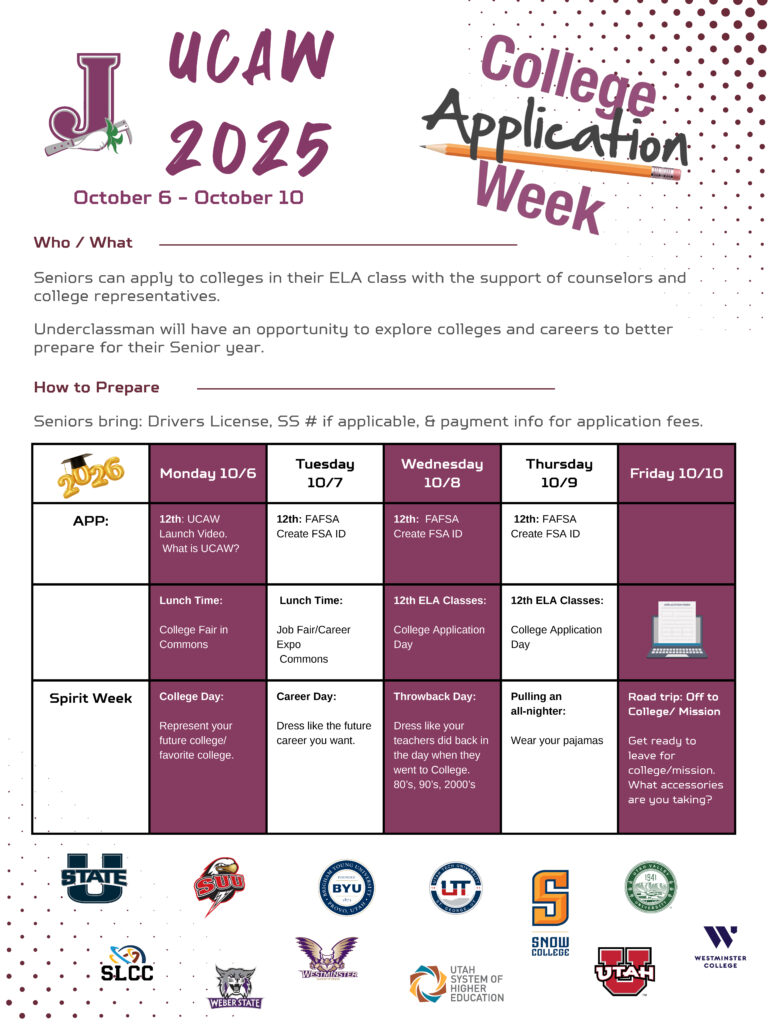 It’s that time of the school year–time to start applying to college, Seniors. To help you with your choices and application process, we will be here to assist you October 6th-10th. For more information: